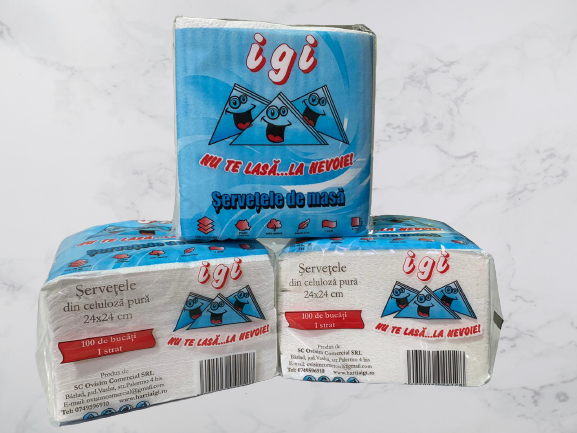 Şerveţele de masă igi 24×24 cm, 100 de bucăţi/pachet, 100% celuloză pură. La cererea clientului putem produce un ambalaj personalizat cu grafică originală.